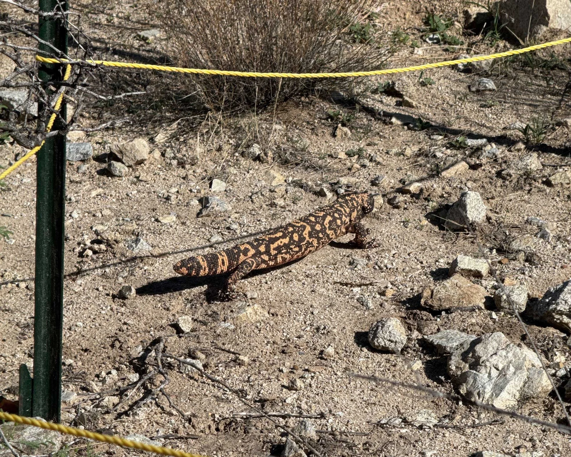 A couple of lizard visitors cruised through the job site at a snake fence installation that Josh was working on in Tucson recently. The Gila left on its own, and the horned lizard was carried to shade a short distance away just to avoid the various boots and jackhammers for the day.
